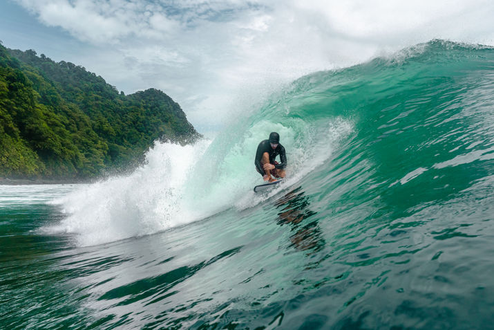 "The Antinomy of Surfing. In essence, it is the purest form of altruistic selfishness, where the pursuit of fullfilment for the ego and the soul are satisfied with the mundane and the natural. The endless but scarce gifts from the ocean ephimerallly appease the relentlessly insatiable need for wave riding: a dichotomy of states. Those who master this art portray insouciant attitude and effortless prowess, obversely displaying belligerent localism and strenuosity in molding to the norm. It is a reflection of the shore itself, where waves crash violently unleashing anarchic chaos within our awareness, while beneath the surface lies a realm that calmly sways unifying rhythmic serenity unto our conciseness. All of this in pursuit of the insurmountable oxymoron of wave barrel-riding, an arduous endeavour to venture inward with the sole purpose of egressing to quietude. The shapeless fluid the rider circumvents submerging into, folds within itself moulding the grail they seek to be engulfed within. An act suffused with harmonic chaos amid a deadly woomb to achieve an aimless purpose. Its all coherently contradictory making senseless sense."